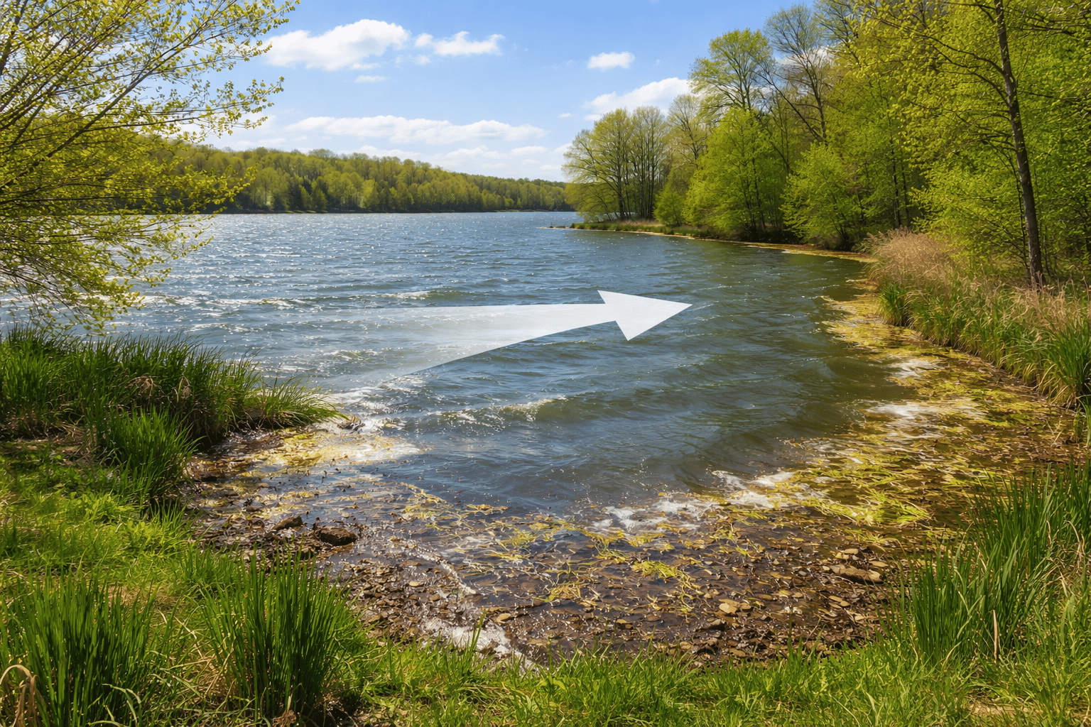 When wind pushes water into these areas, it naturally concentrates everything into a smaller zone, which makes it easier for bass to ambush prey.